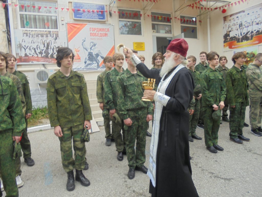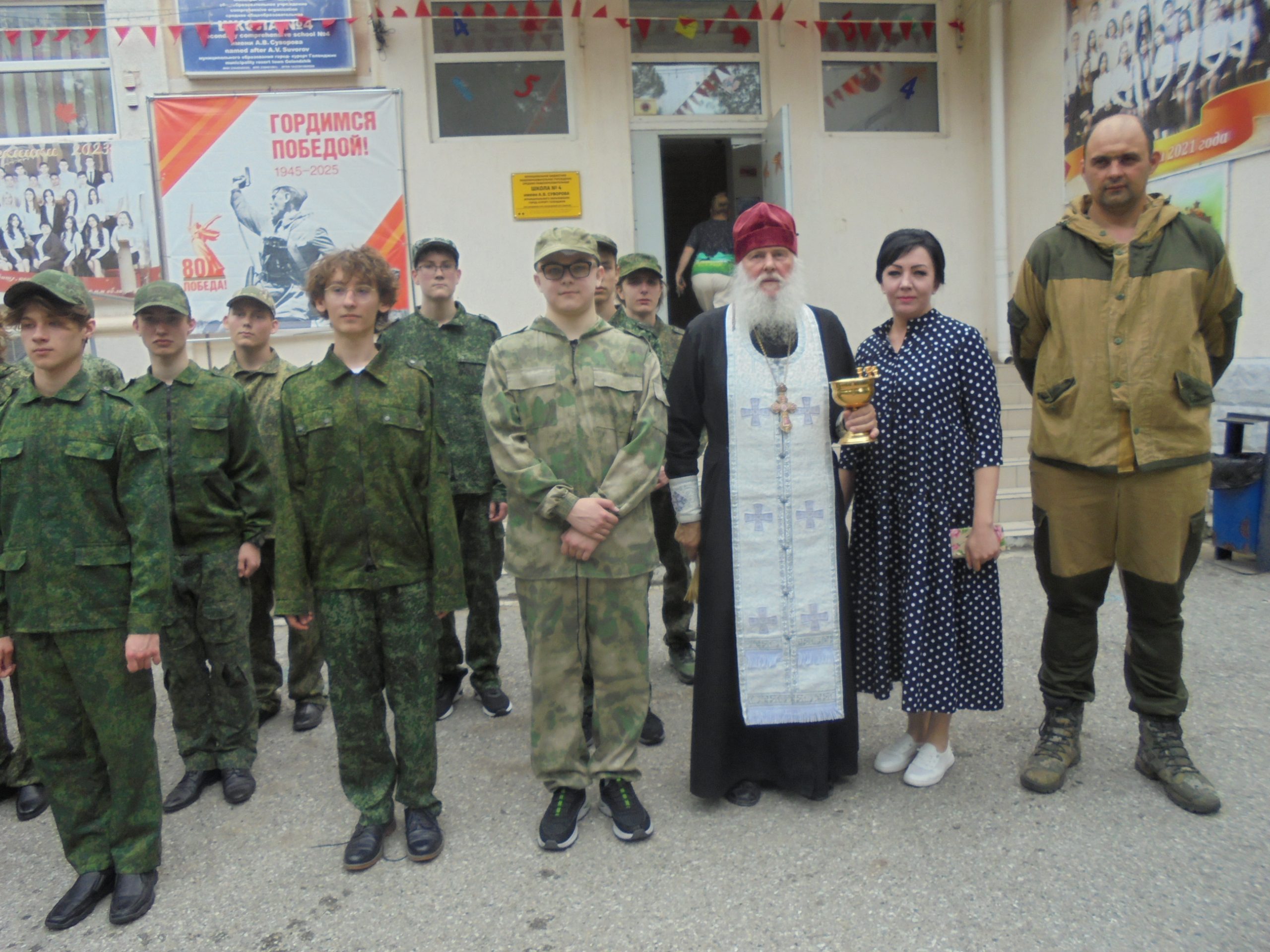 С 27.05.2025г. по 31.05.2025г. на территории МБОУ СОШ№4 им А.В. Суворова прошли военно-полевые сборы для двух десятых классов школы. Благословил начало и окончание военно-полевых сборов десятых классов почетный настоятель Свято-Преображенского храма протоиерей Виталий Ковалев.