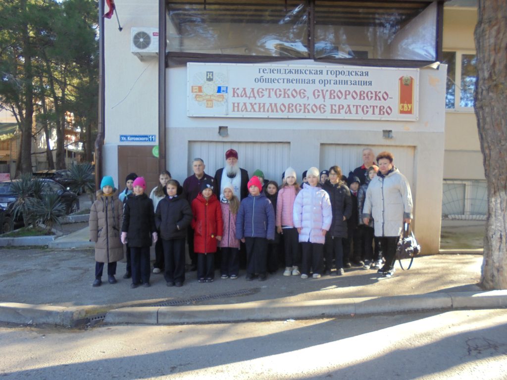 04.02.2026г В офисе Геленджикского Кадетского братства был проведен «Урок мужества» для 3 «Д» класса МБОУ СОШ №2 имени адмирала Федора Ушакова города-курорта Геленджик, классный руководитель Светлана Валуева. Тема урока: 83-я годовщина высадки десанта Героя Советского Союза майора Цезаря Куникова из Геленджикской бухты на Малую землю, район Новороссийска (с 3-го на 4-е февраля 1943г.). С учениками занимались: подполковник Александр Якшев, подполковник Игорь Рыжак, старший лейтенант Сергей Игумнов, моряк педагог Жозеф Месропов и протоиерей Виталий Ковалев. Педагог Жозеф Месропов провел 02.02.2026г. в школьном музее школы №4 им. А.В. Суворова «Урок мужества» посвященный 83-й годовщине разгрома советскими войсками немецко-фашистских войск в Сталинградской битве (1943г.).