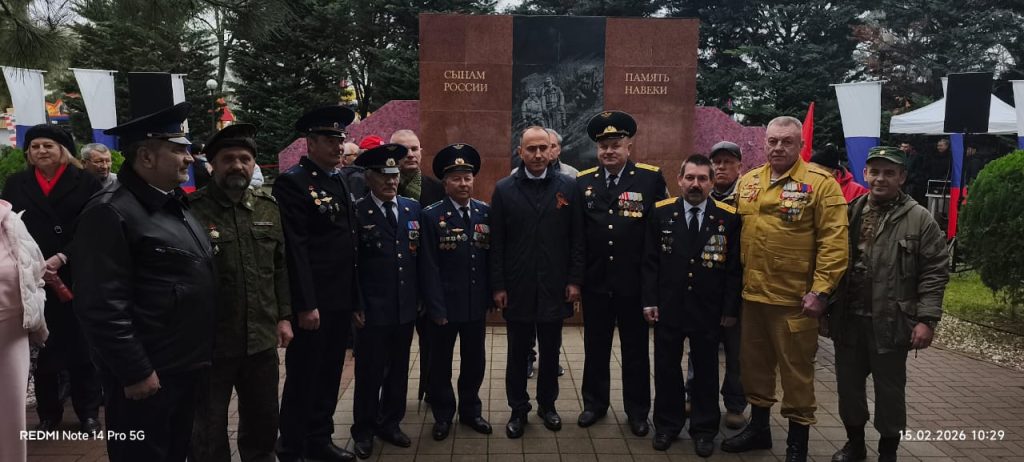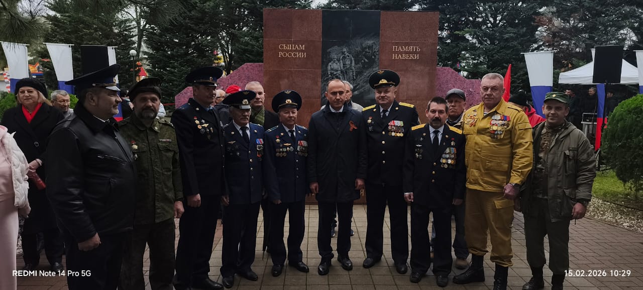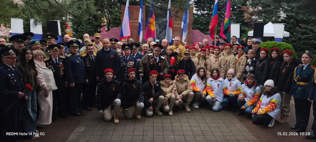 15.02.2026г. Сретение Господа Бога и Спаса нашего Иисуса Христа, 37-я годовщина вывода советских войск из Афганистана, День православной молодежи. В этом году 15 февраля выпало на воскресный день. Накануне праздника члены Геленджикского Кадетского братства провели «Урок мужества» в МБОУ СОШ №4 имени А.В. Суворова города-курорта Геленджик, затем молились за праздничным богослужением в храмах города и в 10.00 участвовали в митинге памяти на набережной у памятника «Героям необъявленных войн».