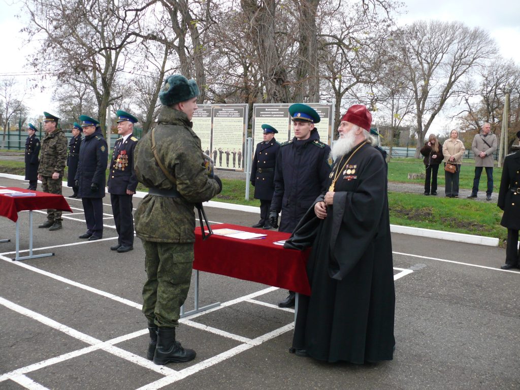 19.12.2025г. На день памяти святителя Николая, архиепископа Мир Ликийских и чудотворца, в день военной контрразведки, в Учебном Пограничном Центре ( с дислокацией в Геленджике) Службы в городе Новороссийске Пограничного Управления ФСБ России по Краснодарскому краю прошла церемония принятия военной присяги воинами новобранцами призыва осень-зима 2025г. Воинов-пограничников поздравить и напутствовать пришли члены Геленджикского Кадетского братства во главе с главным инспектором Черноморского Флота адмиралом Виктором Федоровым, благословил воинов-пограничников почетный настоятель Свято-Преображенского храма протоиерей Виталий Ковалев.