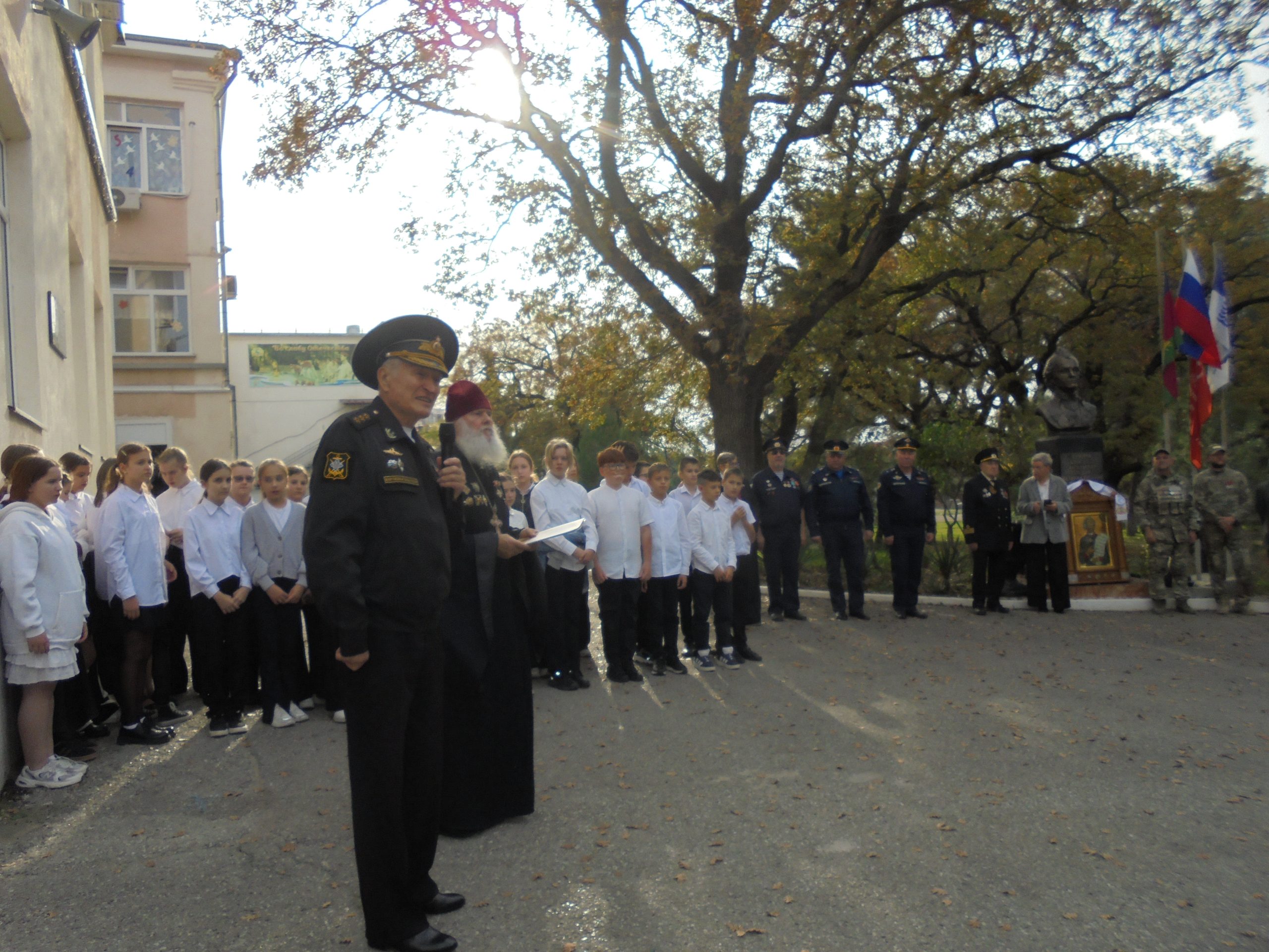24.11.2025. 295-я годовщина со дня рождения выдающегося русского полководца генералиссимуса Александра Васильевича Суворова. В МБОУ СОШ №4 имени Александра Суворова города-курорта Геленджик прошла «Суворовская линейка» посвященная дню рождения полководца. От Геленджикского Кадетского братства старший по званию адмирал Виктор Федоров и духовник школы протоиерей Виталий Ковалев вручили «Благодарственные Грамоты» педагогам и ученикам «за верность суворовским традициям и в ознаменование 295-й годовщины со дня рождения полководца Александра Васильевича Суворова». Педагогический коллектив и учащихся с днем рождения Суворова поздравили ветераны СВО Алексей Калинин и Денис Московкин и председатель Геленджикского отделения Боевого Братства, ветеран боевых действий майор Вадим Кеворков.