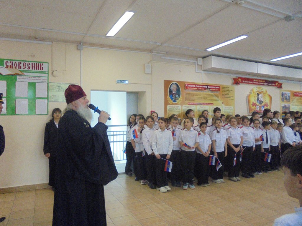 26.01.2026г. В МБОУ СОШ №4 им. А.В. Суворова города-курорта Геленджик прошла «линейка» открытия месячника военно-патриотического воспитания учащихся. В «линейке» участвовали члены Геленджикского Кадетского братства ветеран боевых действий председатель Геленджикского отделения Боевого Братства майор Вадим Кеворков и духовник школы почетный настоятель Свято-Преображенского храма протоиерей Виталий Ковалев.