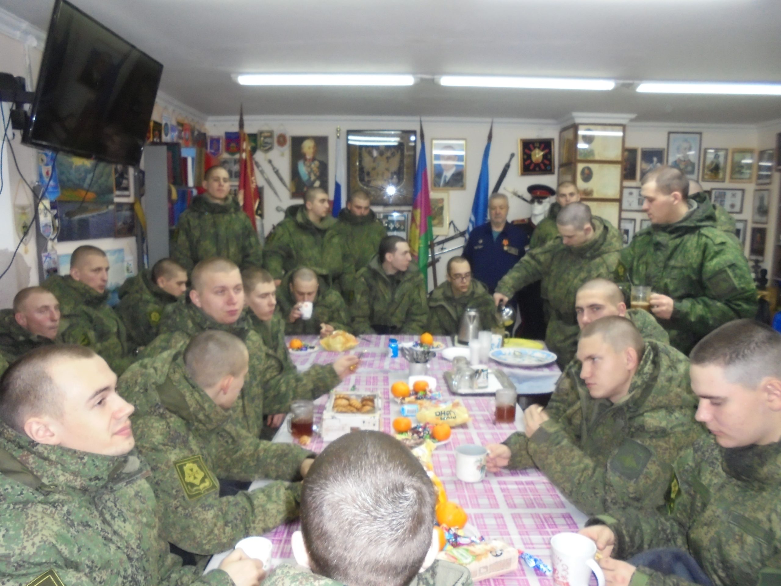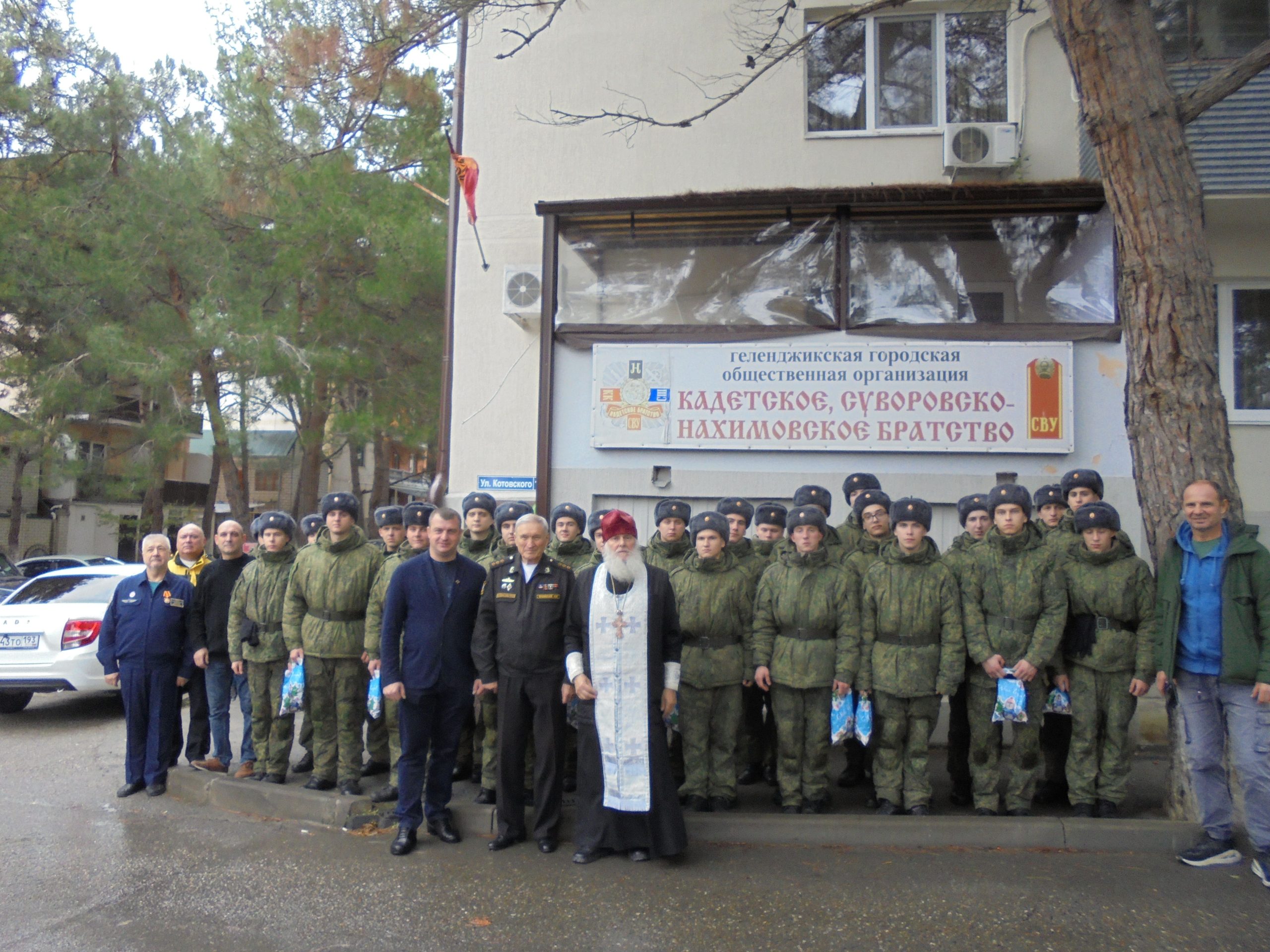 28.12.2025г. Закрывая 2025г. офицеры Геленджикского Кадетского братства провели последний «Урок мужества» в 2025г. для воинов новобранцев в.ч.01256. С воинами занимались: адмирал Виктор Федоров, подполковник Александр Якшев, майор Вадим Кеворков, капитан Евгений Жираковский, ветераны СВО Алексей Калинин и Кирилл Капустин, старший лейтенант Сергей Игумнов, моряк педагог Жозеф Месропов. Воинов с наступающими праздниками с Новым годом и с Рождеством Христовым поздравили депутат городской Думы Нина Прозоровская и председатель городского Совета Ветеранов Арсений Крицкий. Благословил воинов новобранцев и вручил им новогодние подарки от Кадетского братства протоиерей Виталий Ковалев. Так же поздравили ветерана спецподразделения «Альфа» (Управление «А» ЦСН ФСБ РФ) подполковника Валерия Палицына с 70-летием со дня рождения.