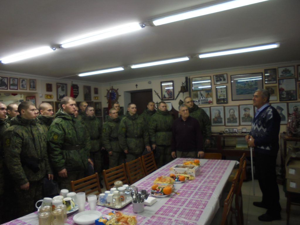 28.12.2025г. Закрывая 2025г. офицеры Геленджикского Кадетского братства провели последний «Урок мужества» в 2025г. для воинов новобранцев в.ч.01256. С воинами занимались: адмирал Виктор Федоров, подполковник Александр Якшев, майор Вадим Кеворков, капитан Евгений Жираковский, ветераны СВО Алексей Калинин и Кирилл Капустин, старший лейтенант Сергей Игумнов, моряк педагог Жозеф Месропов. Воинов с наступающими праздниками с Новым годом и с Рождеством Христовым поздравили депутат городской Думы Нина Прозоровская и председатель городского Совета Ветеранов Арсений Крицкий. Благословил воинов новобранцев и вручил им новогодние подарки от Кадетского братства протоиерей Виталий Ковалев. Так же поздравили ветерана спецподразделения «Альфа» (Управление «А» ЦСН ФСБ РФ) подполковника Валерия Палицына с 70-летием со дня рождения.