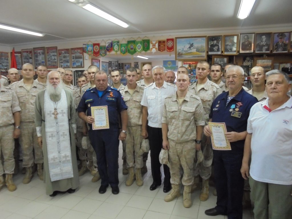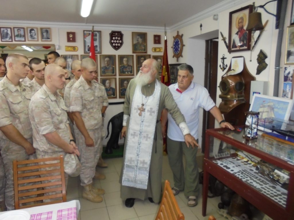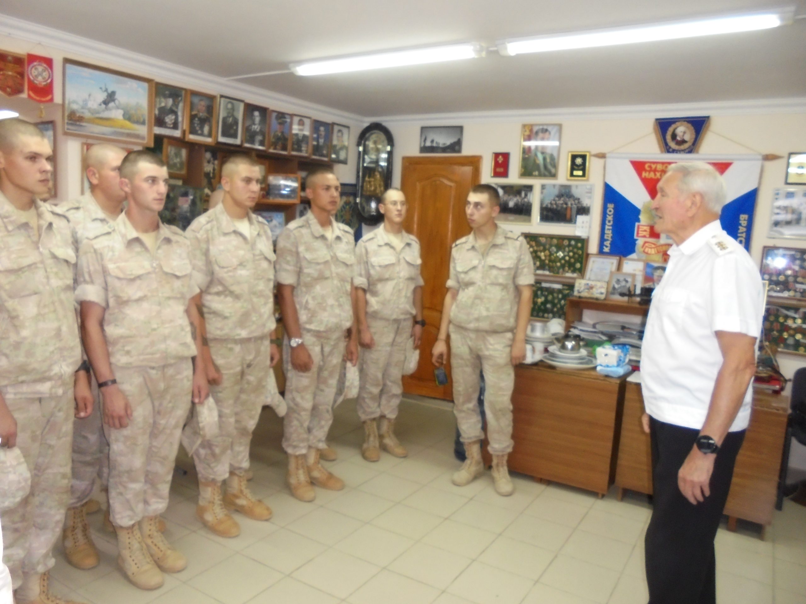31.08.2025г. В офисе Геленджикского Кадетского братства был проведен «Урок мужества» для воинов новобранцев в.ч.01256. С воинами занимались: главный инспектор Черноморского Флота адмирал Виктор Федоров, подполковник Игорь Рыжак, старший лейтенант Сергей Игумнов, педагог моряк суворовец Жозеф Месропов и почетный настоятель Свято-Преображенского храма протоиерей Виталий Ковалев. Председатель Геленджикского отделения Российского Военно-Исторического Общества адмирал Виктор Федоров вручил «Благодарственные Грамоты» РВИО подполковнику Игорю Рыжаку, ст.лейтенанту Сергею Игумнову, моряку Жозефу Месропову и ветерану боевых действий Вячеславу Моисеенко «за активную военно-патриотическую работу с допризывной молодежью и воинами срочной службы». Так закрыли мы лето 2025г.